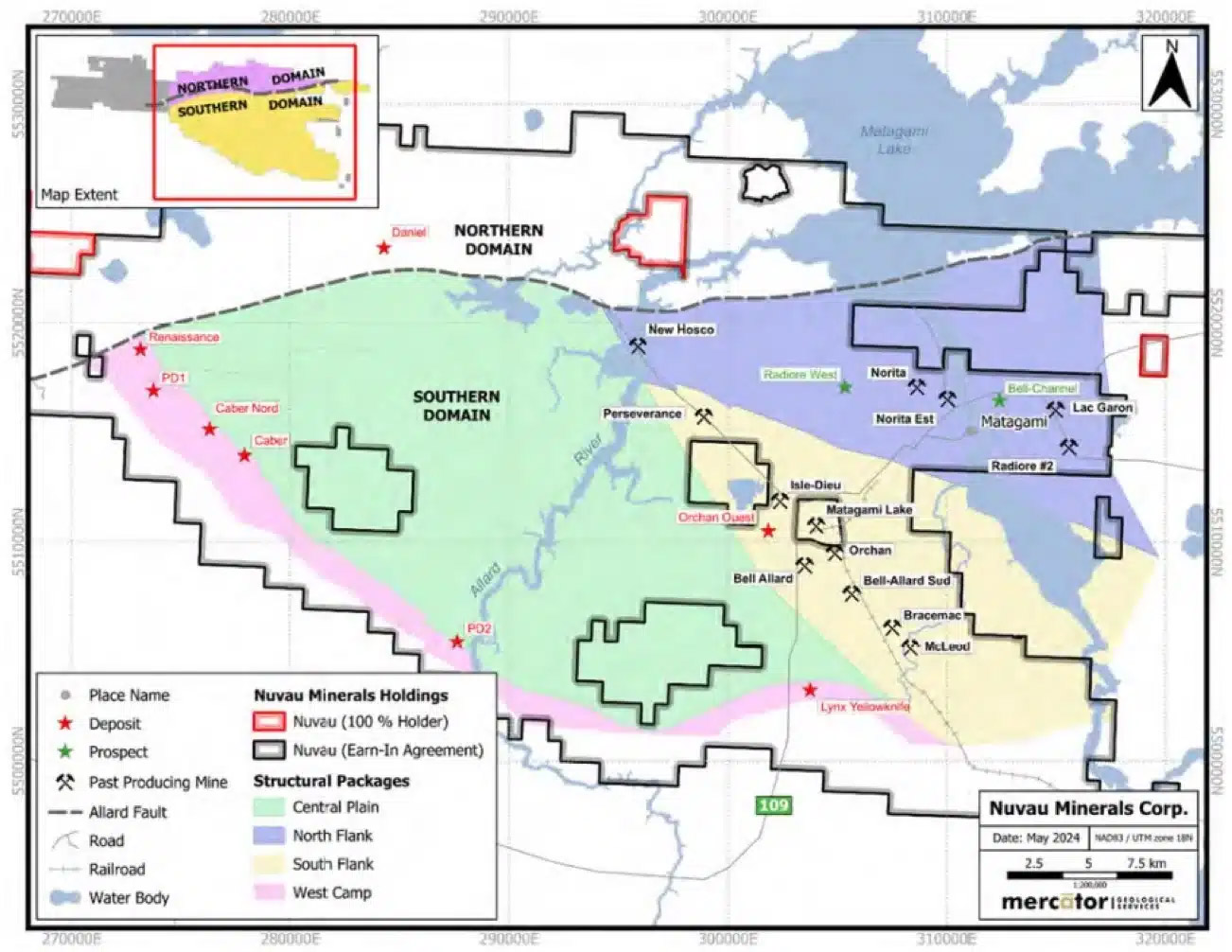 » Après presque trois ans depuis la fondation de la Société, 2024 a été une année charnière pour Nuvau « , a déclaré Peter van Alphen, président et chef de la direction. » Suite aux travaux soutenus de notre équipe dévouée, nous avons été en mesure de réaliser les étapes de qualification et de commencer à négocier sur la Bourse de croissance TSX le 17 décembre 2024. Cela est dû, en grande partie, au soutien continu de nos actionnaires, anciens et nouveaux. Nous avons également continué à travailler à la conclusion de l’entente d’acquisition avec Glencore, qui fera de Nuvau le propriétaire à 100 % de la propriété Matagami au Québec. Nuvau s’efforce de donner un nouveau départ à ce camp minier historique en poursuivant ses initiatives d’exploration sur ce territoire de 1 300 km,2 ainsi que ses efforts pour continuer à réduire les risques liés à un éventuel redémarrage de la production. À l’aube de l’année 2025, nous sommes dans une position financière solide, nous poursuivons nos objectifs et nous cherchons à agrandir notre équipe « .